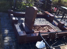 Облицевали бетон полированным гранитом, на территорию участка уложили брусчатку, предварительно приподняв памятник.